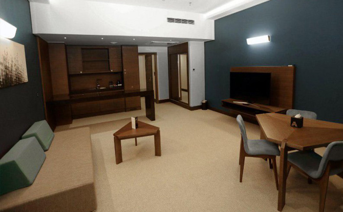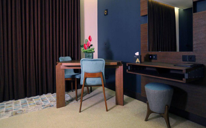 Atana 4-star hotel is one of the newly built and freshly established hotels in Tehran, ready to host travelers with its 10,200 square meters of infrastructure. This luxurious and deluxe hotel is constructed using the most up-to-date methods and modern equipment, located near Valiasr Street and Palestine Square. The hotel features 85 accommodation rooms, a coffee shop on the ground floor, parking on levels 1 and 2, a water complex on level 4, and two comfort floors, including multipurpose halls with a maximum capacity of 250 people, a theater hall with a capacity of 100 people. The hotels theater hall is capable of hosting various meetings, conferences, seminars, and events. Other facilities include a sauna, Jacuzzi, swimming pool, Turkish bath, massage rooms, and a recovery room. Atana Hotels parking has two levels with a capacity of 50 cars to accommodate guests. The hotel is approximately a 3-minute drive from Valiasr Street and a 5-minute drive from Enqelab Street. Its proximity to Laleh Park, Tehran Museum of Contemporary Art, Sadr Highway, Golestan Palace, and other attractions is one of its advantages.