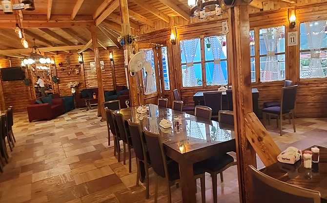 A four-star hotel with a green roof located 700 meters above sea level at the top of the Ramsar cable car in a tranquil and serene mountainous setting was opened in the year 1389. The only means of transportation for guests to the hotel is the cable car, which operates from 9 am to 20:30 in the summer season and from 10 to 17 in the fall and winter. Hotel guests must be present at the cable car complex one hour before the closing time. It should be noted that if guests visit the hotel outside the cable cars working hours, they must pay a separate fee for transportation by a special vehicle. The main building of Bam Hotel has 2 positive floors including the Ilmili restaurant and a roof with a stunning 360-degree view of the pristine and unique nature of the Ramsar and Chaboksar forests, as well as the spectacular horizon of the Caspian Sea, and 4 negative floors for accommodation including 8 VIP suites with forest views in the heart of the mountains. Other recreational facilities in this building include a cable car on the fifth floor, reception, hotel lobby, sports hall, and entertainment facilities such as a billiards club, table tennis, foosball, etc., restaurant, Ilmili coffee shop. The hotels forest village consists of 32 small and large cabins with classic and nostalgic designs located ten minutes away from the main hotel building on a cobblestone walking path. The cabins bright and pleasant colors, surrounded by tree branches and leaves, along with the gentle forest mist, bird sounds, and unique hotel architecture (using natural mountain rocks as part of the decoration and interior view of the suites) are considered unique beauties of this hotel. The hotel also features a 2-story building with two honeymoon suites located 10 minutes away from the main building through a staircase path without car access. Other hotel amenities include several restaurants, coffee shops, banquet hall, fast food, reputable commercial units and shops, branches of trade and post banks, a karting track, a buggy track, a paintball playground. Bam Ramsar Hotel is a suitable place for nerve relaxation and relieving physical and mental fatigue. Guests of this hotel can experience a luxurious stay in a forested mountainous environment in the heart of pristine nature. The 4-person cabins are located away from the reception.