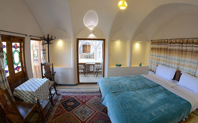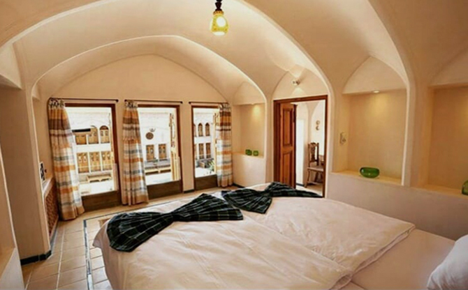 Mehinestan Rabbih Khané is a historic hotel in Kashan, dating back to the Qajar to the Pahlavi era, located on Fazel Naraghi Street, Darb Bagh neighborhood. In August 2005, it was registered as one of Irans national heritage sites. The hotel consists of three separate courtyards: inner courtyard, outer courtyard, and servants courtyard, with both French and Iranian amenities and services. The building was reconstructed in 2010 and its restoration was completed in 2014. The main architectural spaces include two cisterns, Shah Neshin (royal living room), Heshti entrance, summer and winter verandas, and a wind tower. The fusion of modern amenities and historical environment offers a delightful stay for guests. Mehīnestān Rabbih Khané has been selected by the Cultural Heritage Organization of the country as the most luxurious historic residence. Other facilities of the hotel include a traditional restaurant serving Kashani and Iranian cuisine with a capacity of 50 people and an elevator.