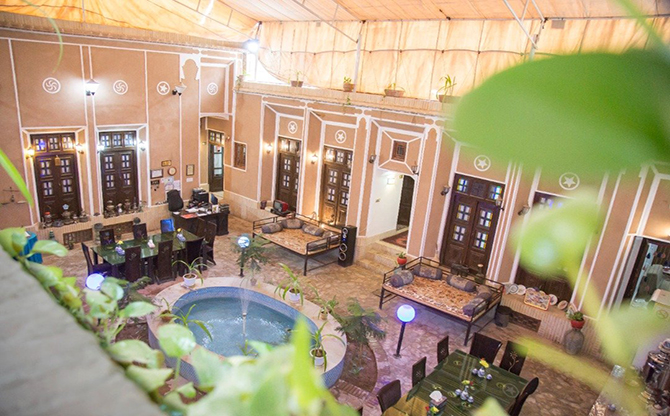 Noghreh Eco Lodge is located in the historical neighborhood of Fahadan in Yazd, the first adobe city in the world. This ancient traditional house belongs to the Qajar period and has a history of over 100 years. The lodge was renovated in 2017 and opened as Noghreh Eco Lodge for visitors to enjoy. Upon entering through the wooden gate of the lodge and passing the traditional Dalan, you will see the courtyard and beautiful surroundings of this traditional house, with traditional beds, wooden tables and chairs set around a turquoise water basin for tourists to rest and enjoy tea and herbal drinks. Facilities and services provided: Noghreh Yazd traditional lodge has 8 rooms decorated with antique objects in a completely traditional style, all equipped with necessary amenities for tourists. Tourist attractions in the area: The bazaar and Hammam Khan (the longest bazaar in Yazd), Koushk Nou watermill, historical Lariha house, coppersmiths bazaar, and Dolat Abad Garden hosting the tallest wind tower in the world and Alexander Prison are among the historic and tourist sites near Noghreh Eco Lodge. Another recommended place to visit is the Sabats of Yazd, which are covered alleyways built to protect people from the intense sunlight and heat of the desert city. These Sabats also prevent cold air from entering the alleys during winter and help keep them warm. The beautiful architecture of the Sabats has turned these old alleys into a tourist attraction. Approximate distances from the lodge to tourist attractions and key locations: Distance to Shahid Sadooghi International Airport Yazd > 11.8 km (20 minutes) Distance to Yazd Railway Station > 7.1 km (14 minutes) Distance to Yazd Bus Terminal > 12.6 km (22 minutes) Distance to Yazd Traditional Textile House > 19 meters (1 minute) Distance to Lariha Historical House > 170 meters (1 minute) Distance to Alexander Prison > 400 meters (1 minute) Distance to Koushk Nou Watermill > 140 meters (1 minute) Distance to Yazd Traditional Handicrafts Shop > 400 meters (3 minutes) ... (the rest of the distances to other attractions are listed)