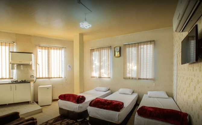 Maryam Kashan Apartment Hotel consists of 9, separate suite-style rooms. The room amenities include single and double beds, split heating and cooling system, television, refrigerator, stove, kitchen cabinets, sink, western toilet, and bathroom. There is an elevator in the building. The breakfast is self-service, including both hot and cold options.