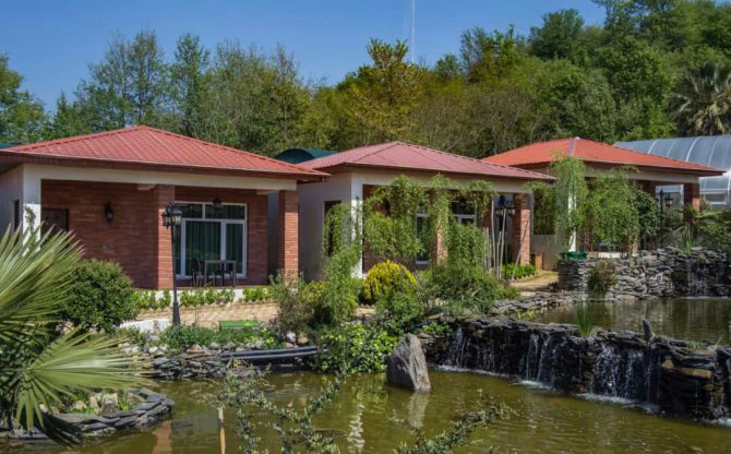 Ghoo Farm Residential Complex in Lahijan started operating in the village of Kooh Bijar in Farvardin 1398. The Ghoo Farm complex covers an area of 45,000 square meters, with 13 suites located next to each other in one part of the complex, along with other recreational facilities. The tourist complex is located 5 kilometers away from the center of Lahijan, and guests can visit tourist attractions such as Sustan Lake, Sheitan Koh Waterfall, Lahijan Green Roof, and Lahijan Pool by walking a maximum distance of 3.9 kilometers. Additionally, there is a distance of 30 kilometers from the Ghoo Farm complex to the coast of the Caspian Sea. Dear guests, please note that the three-star suites of Ghoo Farm Lahijan are equipped with a few steps at the entrance.