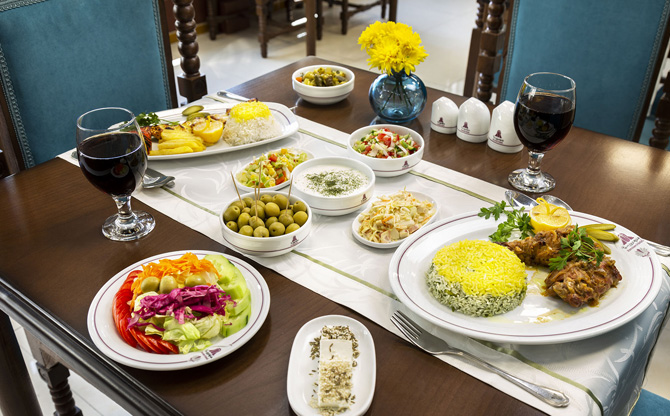 I want to tell you right away that I didn't live in this hotel, but we went to the hotel's restaurants for dinner almost every day. The grounds are beautiful. The restaurant is beautiful very, there is a street between fountains and flowers, there are places inside where everything is done in a typically Persian style. It's very beautiful and nice to not only eat there, but also just spend time there. The kitchen is gorgeous. I especially liked ash soup, different kebabs and a dish of eggplant, I don't remember what the name is. I can't say anything about the rooms, but the grounds and location are just gorgeous.