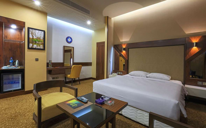 Olympic Hotel is one of the best four-star hotels in the capital city. It was opened in Azar 1380 (November-December 2001) in the northwest of Tehran, overlooking Chitgar Forest Park with a unique view of Mount Damavand, the highest peak in Iran, and the Alborz mountain range. This hotel has 100 accommodation spaces with chic and modern decoration, offering all modern welfare and accommodation services. Olympic Hotel, located by the serene and pleasant Azadi International Lake, provides easy access without traffic to Imam Khomeini International Airport, Mehrabad Airport, as well as the main roads of the capital. By providing services in line with international standards, the Olympic Hotel has managed to gain a special position in the hotel industry. Other amenities of the hotel include a 24-hour Yas restaurant, a café shop, a unique traditional tea house, a theater hall with a capacity for 600 people, a conference hall for 250 people, various rooms for educational classes and lectures, internet café, swimming pool and sauna, fitness center, traditional bath, massage room, billiards and chess room, artificial grass football field, several shops, a bank, a handicrafts corner, a confectionery, an exchange office, a beauty salon, a travel agency, a clinic, and experienced and skilled staff.