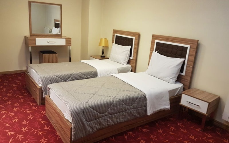 * Behbood Tabriz Apartment Hotel offers large 75-square meter two-bedroom suites with a kitchen equipped for cooking, separate French toilet in the bathroom, as well as a separate Iranian toilet, providing a homelike environment for valued guests. * All suites in this apartment hotel are two-bedroom with 4 beds, and a special advantage of booking these suites for families of 2 or 3 people, and even single bookings, is benefiting from the comfort of a large 4-bed suite at the prices of 1, 2, and 3 guests. * Children under three years old stay for free, and children aged three to seven are charged half price. * Marriage certificate reception is only possible with a prominent stamp from "Marriage and Divorce Registration Offices," and in case there are photos, it will be permitted. * There is limited parking next to the hotel, with unlimited parking available 200 meters ahead. * The apartment hotel has a restaurant and laundry services, and the hotels café shop is ready to serve guests until 11 pm.
