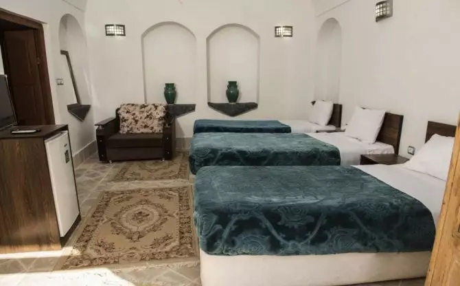The hotel architecture belongs to the late Qajar period and is in the form of a garden courtyard, with rooms arranged around the central courtyard on two floors. The accommodation is located within the UNESCO World Heritage Site area and, in addition to its unique architectural charm, allows guests to explore the historical and picturesque sites of the international city of Yazd with just a few minutes walk. The proximity of the hotel to shopping centers and all tourist attractions is one of its features. The serene and traditional courtyard of the hotel, along with a turquoise pool and a stone fireplace, as well as the young hosts with tourism and hotel management education, can create unforgettable moments for you.
