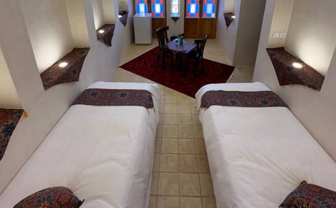 The boutique hotel Baran Aran and Bidgol is divided into two parts. The first part belongs to the Qajar period in 1290 and the second part belongs to the first Pahlavi period in 1318, which was reconstructed and put into operation in 1403. The beauty and modernity of this complex are among the advantages of this accommodation. This complex has two floors and 8 rooms. Hotel Baran provides the opportunity for guests to experience rosewater extraction in the courtyard of the complex. Guests can pour the flowers into the distillation apparatus with their own hands and then pour the rose water they have made themselves into bottles after daily walks. Additionally, the possibility of organizing desert and astronomy tours for travelers is provided. The distance of this accommodation to Marnjab Desert is 10 minutes, and the distance to the city of Kashan is also 10 minutes.