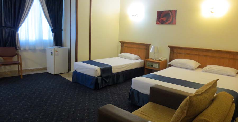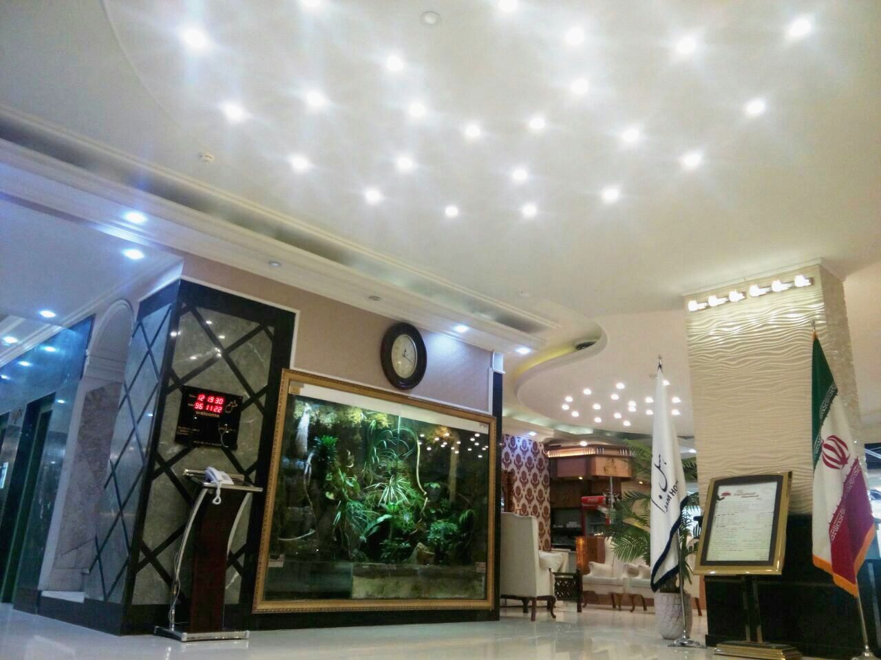 The 4-star Jom Hotel is located 2 kilometers away from the holy shrine of Hazrat Reza on Pasdaran Street in the city of Mashhad. This hotel, with 12 floors, aims to provide comfort and well-being to its guests and has 154 various types of accommodation units with chic decorations and all necessary amenities on floors 1 through 8. It offers 5 elevators with a capacity of 50 people, a restaurant and a panoramic hall, the Pearl Hall and Restaurant, Maryam Restaurant, Abshar Restaurant, Lobby Café Shop, free shuttle service to the shrine, free parking on two floors, 24-hour taxi service, free internet, and experienced and trained staff among its facilities.