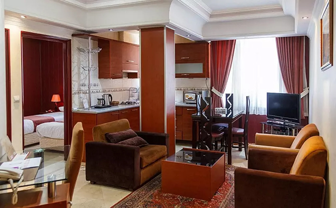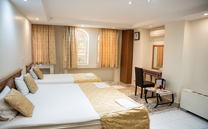 The three-star Ajam Hotel, situated near the foothills of the Alborz mountain range, is the first and largest hotel in Azadshahr city. The hotel comprises of two towers: the Eastern tower, inaugurated in 2010 (1391), and the Western tower, opened in 2014 (1393). Ajam Hotel boasts 54 rooms and luxurious suites that are equipped with all modern amenities. The hotel provides various services including conference and meeting halls for business and family gatherings of different sizes, hosting super league sports teams, economic and commercial groups from both national and international sectors, wedding ceremonies, as well as mourning gatherings with a capacity of 1500 people. The hotel offers a diverse menu and employs a team of experienced and professional young staff in the hospitality industry to ensure a pleasant and memorable stay for all guests.