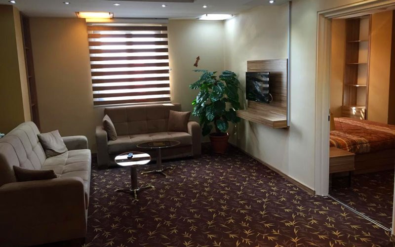 * Behbood Tabriz Apartment Hotel offers large 75-square meter two-bedroom suites with a kitchen equipped for cooking, separate French toilet in the bathroom, as well as a separate Iranian toilet, providing a homelike environment for valued guests. * All suites in this apartment hotel are two-bedroom with 4 beds, and a special advantage of booking these suites for families of 2 or 3 people, and even single bookings, is benefiting from the comfort of a large 4-bed suite at the prices of 1, 2, and 3 guests. * Children under three years old stay for free, and children aged three to seven are charged half price. * Marriage certificate reception is only possible with a prominent stamp from "Marriage and Divorce Registration Offices," and in case there are photos, it will be permitted. * There is limited parking next to the hotel, with unlimited parking available 200 meters ahead. * The apartment hotel has a restaurant and laundry services, and the hotels café shop is ready to serve guests until 11 pm.